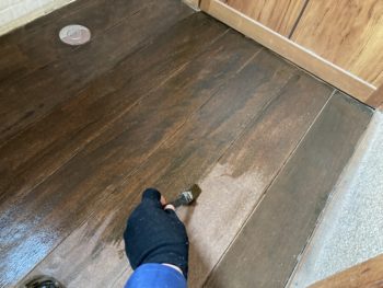 【玄関ホールの木床を塗装】