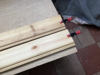 パイン材をクリップで固定します。