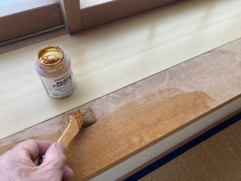 出窓の手前にある窓台も水染み跡があり見苦しいので薄い塗料で着色して目立たなくしてみました。