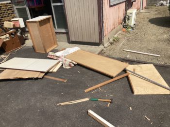 各務原市の空き家DIY事業で借りた空き家に残る残置物の片付けを入居者と共に続けています。