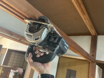 丸鋸で鴨居を切断して撤去