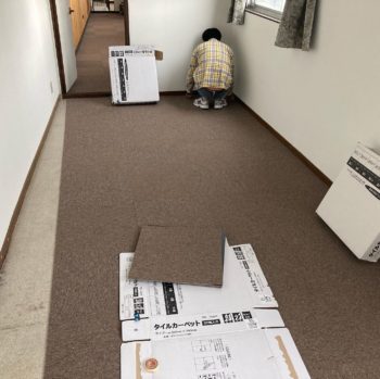 清掃の予定でしたがタイルカーペットを敷き込む事に変更しました。