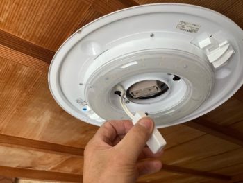 玄関の蛍光灯が暗かったので撤去して付け替えですが、天井が竿天井のため下地もなく取付金具が取付できず、また竿がじゃまして照明器具が入りません。