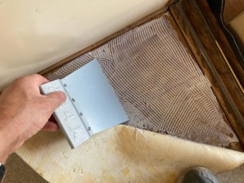 接着剤を塗布してクッションフロアを接着