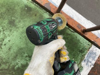 ワイヤーブラシをインパクトに取り付けケレン作業