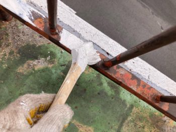 刷毛で油性塗料を鉄部に塗装