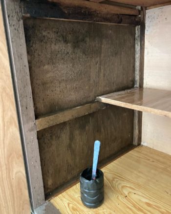 引き出しだけ塗るつもりでしたが、次第に他の部分の汚れも気になって扉の裏面や内部の側面なども塗装してしまいました。