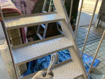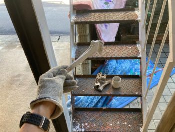 各務原市の空き家車庫の鉄骨階段を塗装しています。