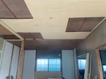 和室の天井にベニアを貼りかけでした。
