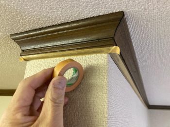 クロスに直に塗装するのですが、うまくいくのか不安ですが、まずはマスキングテープやマスカーで塗装部分以外が汚れない様に保護します。