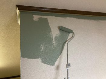これまでにマスキングテープやマスカーで養生を行い、周囲を刷毛塗装しましたので、残りをローラー塗装で一気に仕上げます。