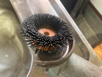 次に樹脂製のブラシに取り替えて研磨するとサビや汚れを見事に落として光輝き始めました。