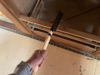まずは物入れが洋服タンス組み込みになっていた部分で引出しの枠などが付いていてカラーボックスを置くのに邪魔になるというので撤去の希望がありました。