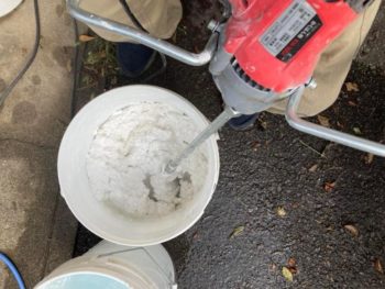 水と漆喰を混ぜて適度な粘りになる様に、水や漆喰の量を何度も調整して混ぜていきました。