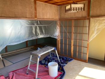 岐阜県各務原市の空き家DIYリノベーション事業で空き家に入居された子育てママが2階をカフェにするDIYが始まり、畳を撤去して床を貼ったり床の間を解体して壁に石膏ボードを貼ったりしてきました。