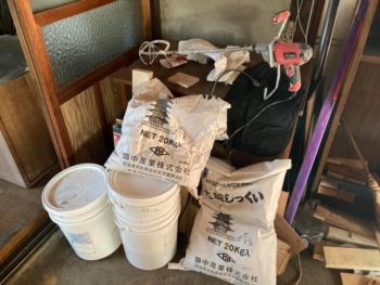 大和しっくいを練って壁に塗ります。