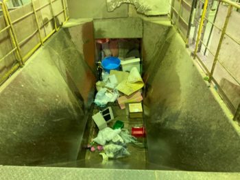 軽トラから降ろして大きなピットに放り込むのですが,一時的にストップしていたのでピットの手前に立てかけておき、後は職員さんが投入してくれるそうです。