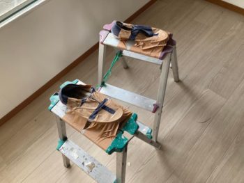 脚立に靴を貼り付けた高下駄を自作