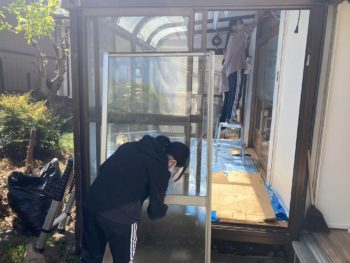 アルミサッシ窓を外して綺麗に清掃しました。