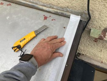 水平方向のパネルとアルミ枠のジョイント部には日東電工のアルミブチル防水テープを貼ったのですが、さらに縦方向のジョイント部にも追加で貼ってみました。