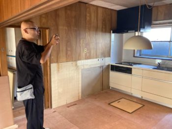 ご案内した岐阜市の空き家のシロアリ被害の部分や蟻道を見学いただき、またDIYで施行中のLDK床貼りやレスキューして取り付けたキッチンも見てもらいました。