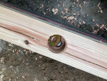 さらに座金が土台上部に出ない様に土台材を座彫加工を行いました。