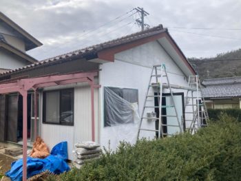 岐阜県各務原市の空き家を高齢者デイサービスとして改修していますが、お客様と共にDIYで外壁を塗装しています。