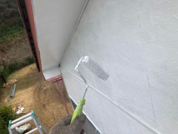 まずは弾性フィラーを下塗りしてから、水性シリコン塗料を3回塗りました。