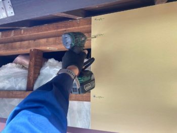 お客様がホームセンターで石膏ボードを購入してくれたので、一緒にDIYで貼っていきます。