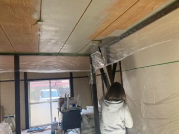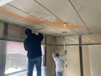 しかし天井のシミや汚れが気になって来て天井もDIYで綺麗にされたいとお客様が言われるので、天井塗装をすることになりました。