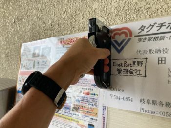 ゴミの案内は掲示しましたが管理会社の当社への連絡先として私の名刺を拡大コピーしラミネート加工してタッカーで留めつけました。