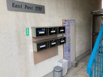 看板とポスト、掲示板、ゴミ箱など集約しています。