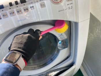 所定のベランダの洗濯機置き場に設置したのですが、蓋など開けてみると洗剤がこぶりついて汚れたままでしたので掃除する事にしました。