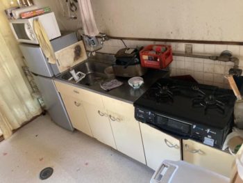 バランス釜という古い給湯器が浴室内にあるだけなので、今後は撤去して外部にガス給湯器を設置してお湯を浴室やキッチンに送り込む予定です。