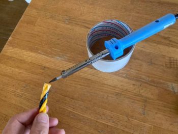 トラロープを15m購入して3mで5本に切り、端部がほどけない様にハンダゴテで溶かして溶着しました。