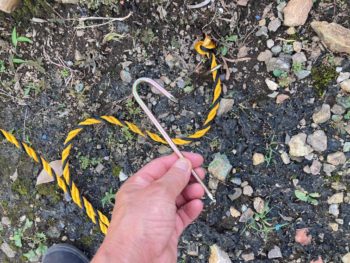 さらに端部を金物で固定した時に抜けてしまわない様に縛ってコブを作りました。