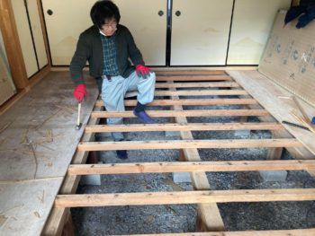 その時に下地も痛んでいるとの畳職人さんから報告を受けたので、床も修理する事にしました。