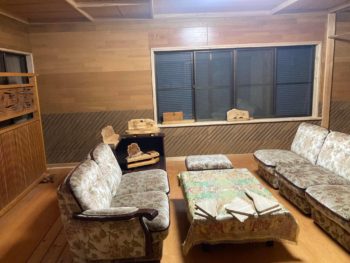 並びにある父親の工房のリビングも完成して木工作品が置いてありました。