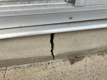 基礎が大きくひび割れ床の一部が傾斜しています。