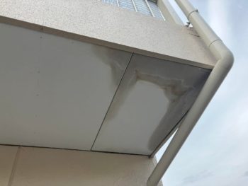 軒天井に雨染み跡があり排水ドレンから水漏れの可能性がありますね。