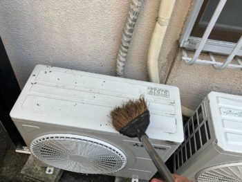 また入居者からコウモリの糞がエアコン室外機の上に落ちているので何とかして欲しいとの事で、とりあえず掃き掃除だけはしておきました。