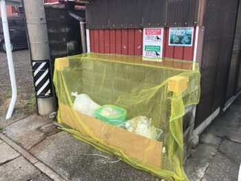 また、網を被せない利用者もいる様なのでカラス対策のために必ず網を被せる様に通知する掲示を作成して貼り付けしました。