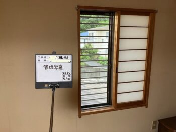 看板を作成して写真を撮影しつつ空き家をチェックしています。