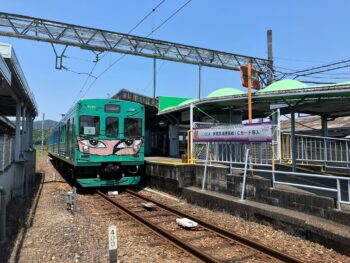 伊賀神戸駅で降りて乗り換え 忍者列車がいました。