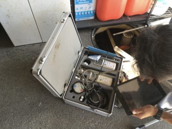 水質を計測機器で調べています。