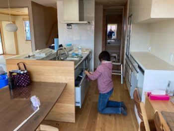 奥様はキッチンの引き出しを全て水拭き清掃と細かい作業を中心に行なっていました。