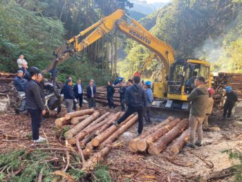 JBN国産材委員会の企画で、紀州の山長商店様の工場見学に続いて森林伐採現場を視察しました。
