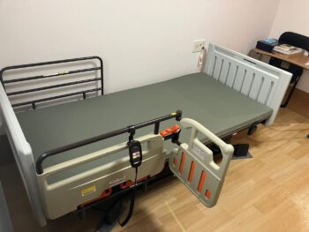 当初は岐阜市の空き家にあった古い電動ベッドを再利用していましたが、現場のスタッフさんから**「高さ調整(昇降機能)がないと介助が難しい」**とのアドバイスをいただきました。
