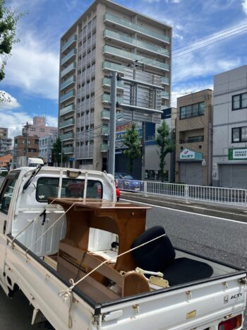名古屋のお客様宅で学習机を軽トラに乗せました。